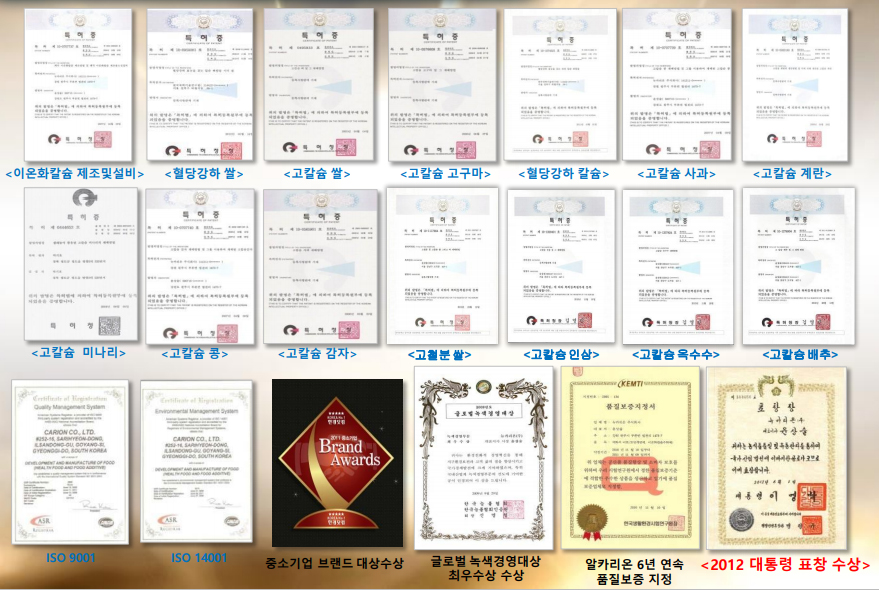 - 8. 특허 제 10-0707737호 등록 (이온화칼슘 제조 및 설비)